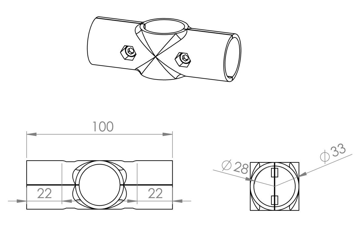 Conector en T ⌀28 mm