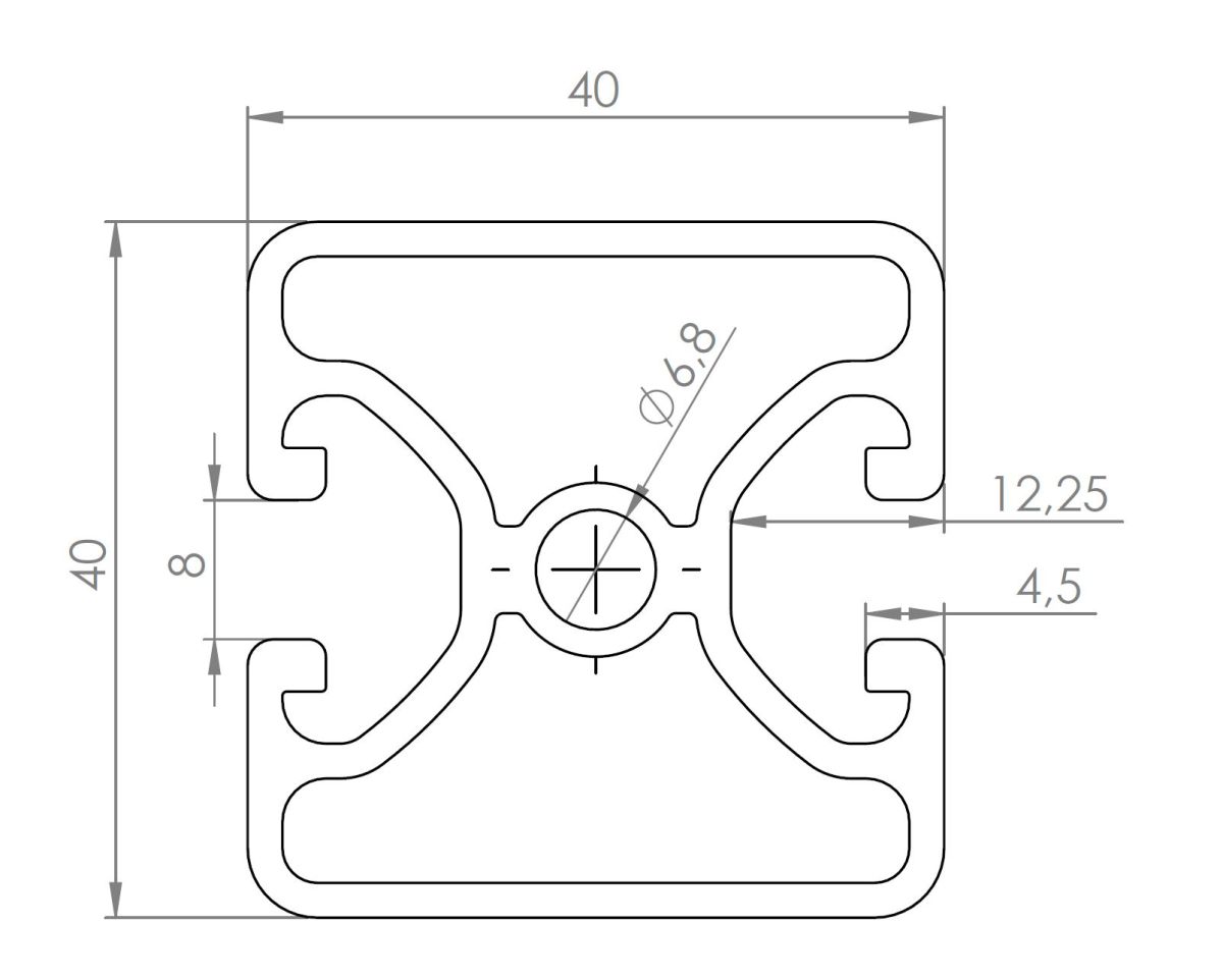 Perfil de aluminio 4040 – 2 ranuras en T 180°